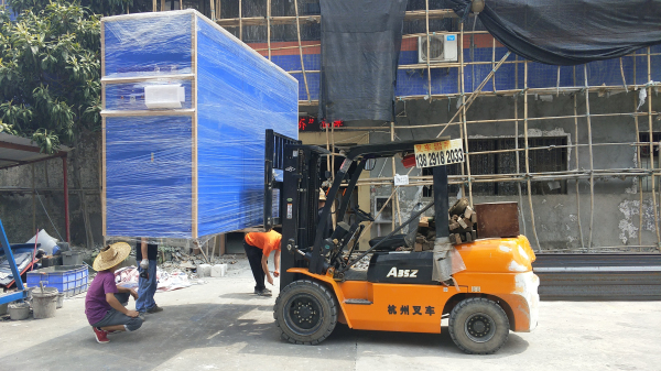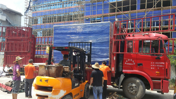 注:圖為80立方大型步入式恒溫恒濕試驗(yàn)房(控制部分)裝車中