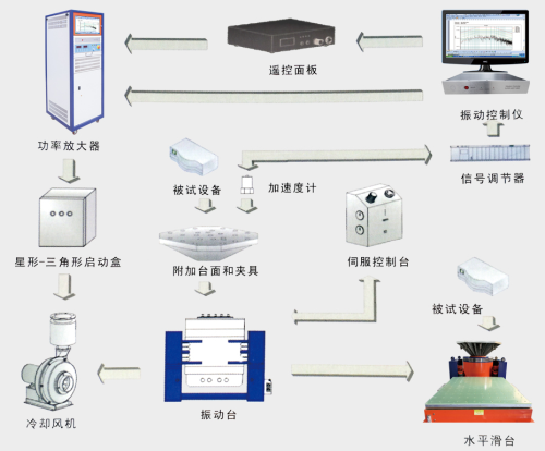 振動(dòng)臺(tái)系統(tǒng)有幾大部分組成功率放大器(簡(jiǎn)稱功放)控制儀、振動(dòng)臺(tái)、附加臺(tái)面及夾具、制冷單元(有冷卻風(fēng)機(jī)、水冷裝置)、傳感器、水平滑臺(tái)。